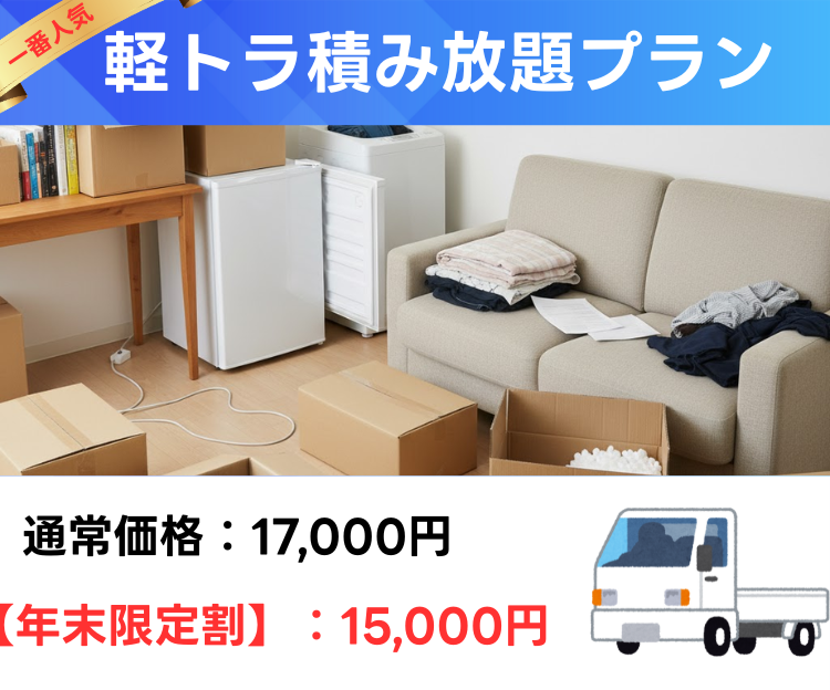 ワンルームいっぱい相当の不用品処分におすすめのプランです。