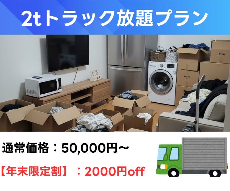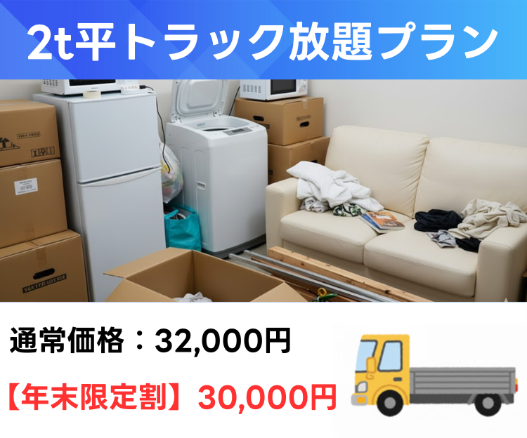 回収する不用品の量によっては、2t平トラックプランで済む可能性があります。まずは気軽にご相談ください。